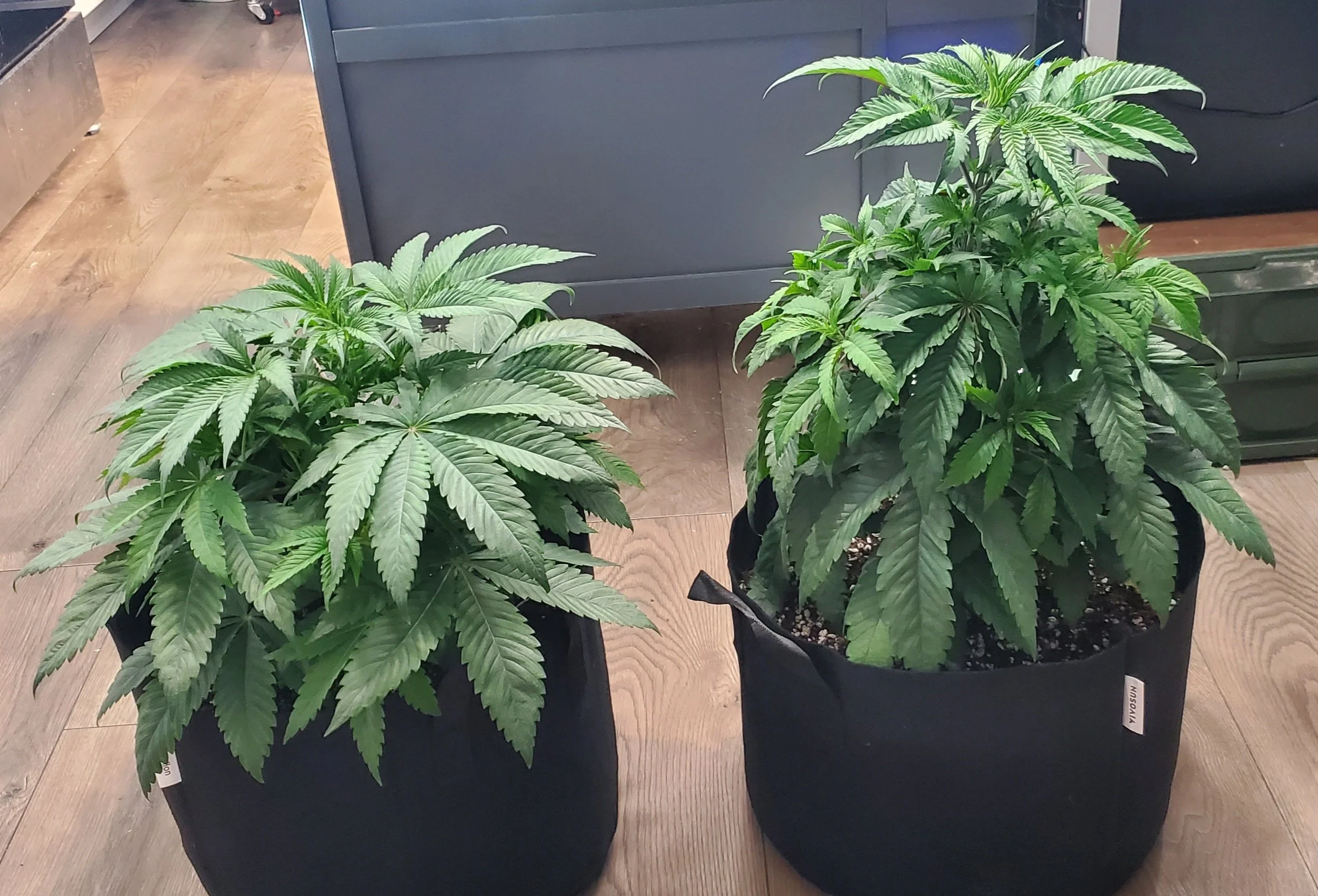 Edenya, a Blue Dream strain, case #01 on the left, showing what is becoming a standard Haivyan trait, the three leaf whorled phyllotaxy, increasing yield by at least 30%, compared to the standard two leaf phyllotaxy shown in the right picture.