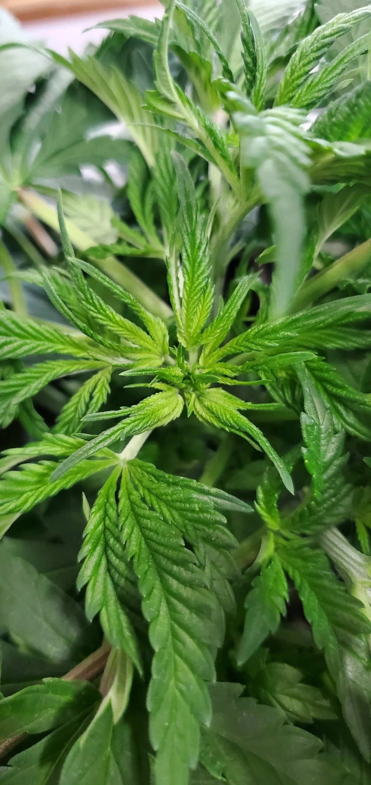 Echo, a Blue Dream strain, case #02 not only created a whorled phyllotaxy, but she created and stabilized never before seen - FIVE LEAF radial burst or whorl. All potential flower sites.