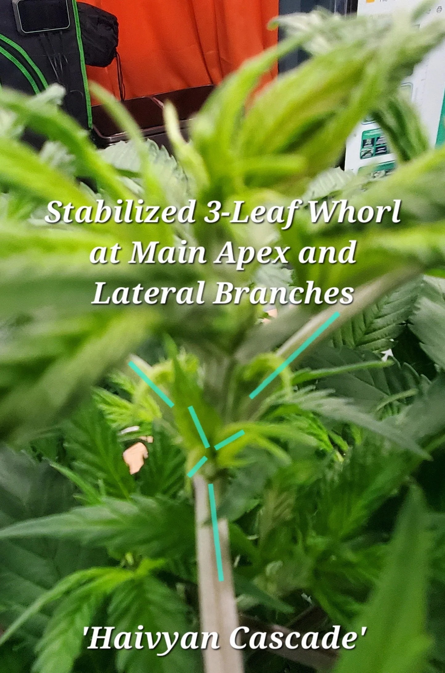 Edenai, case #05, clone from Edenya, displaying whorled 3 leaf phyllotaxy at main stem and lateral branches.