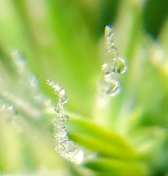 Instead of one straight stem and one bulb, as seen in the left picture, the Haivyan Helix trichome spirals with multiple bulbs, all loaded with medicinal properties seen on the right.