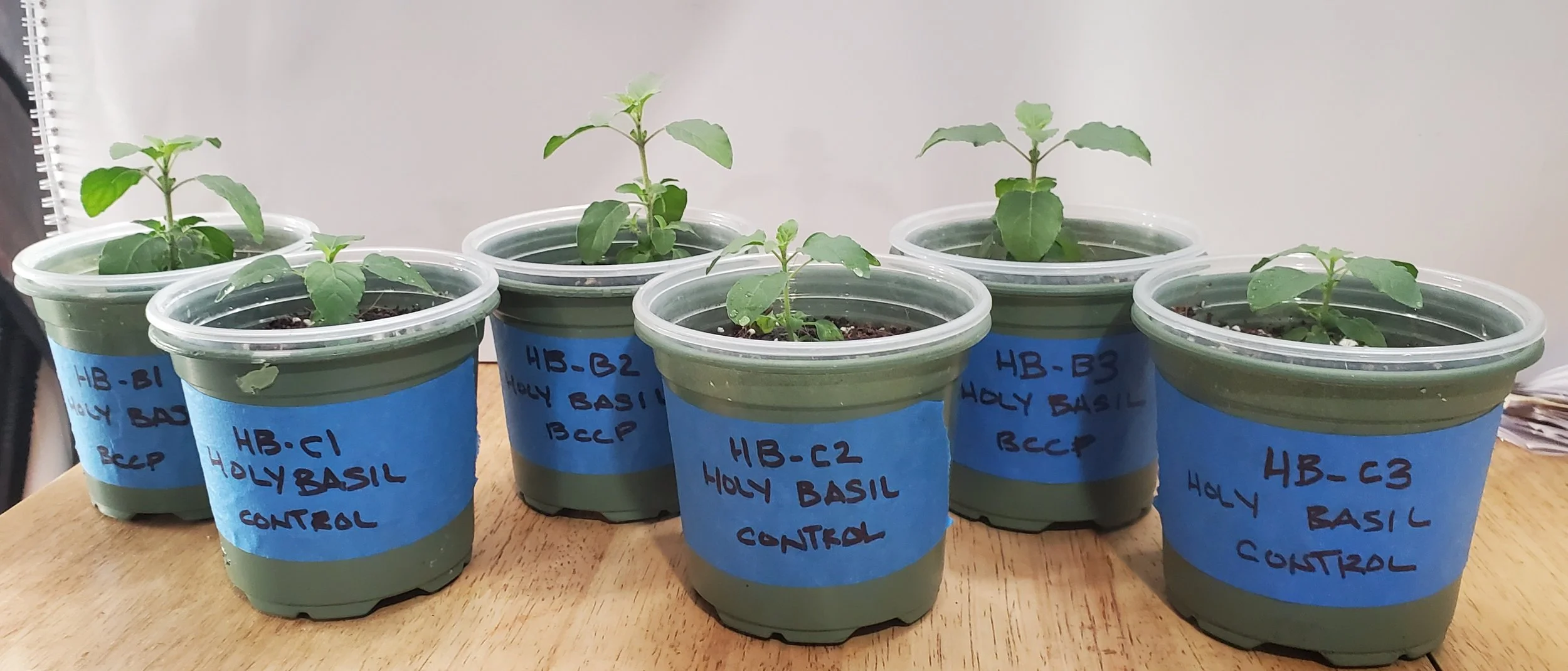 As shown in the photos, Holy Basil demonstrates accelerated growth, and earlier structural and reproductive development compared to untreated controls.