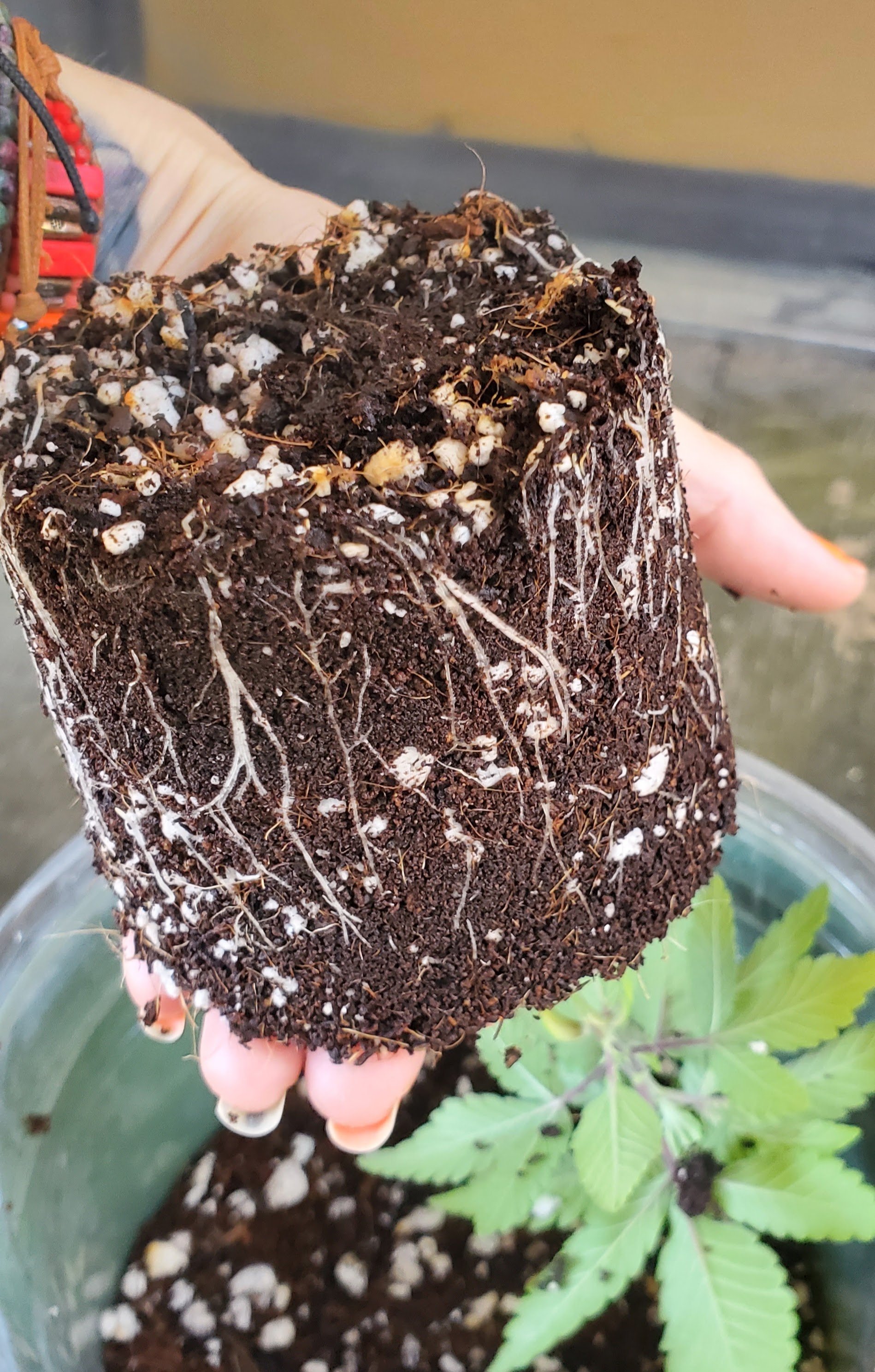 Early Anthocyanin expression in Lemon Balm. BCCP on left, Control on the right